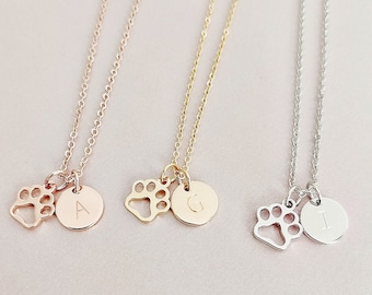Paw Necklace Sterling Silver Dog Paw Charm With Initial Disc Etsy Paw Necklaces Paw Print Necklace Dog Paw Necklaces